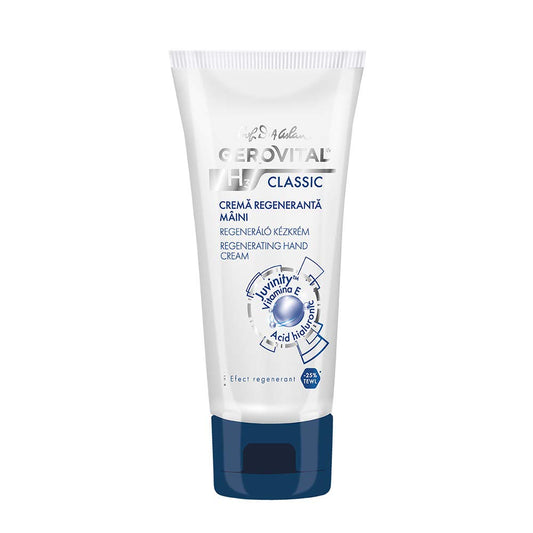 GEROVITAL CLASSIC Moisturizing Hand Cream for Dry, Cracked Hands with Hyaluronic Acid, Juvinity™, Vitamin E, Regenerating Cream, Nourishes and Softens, 100 ml