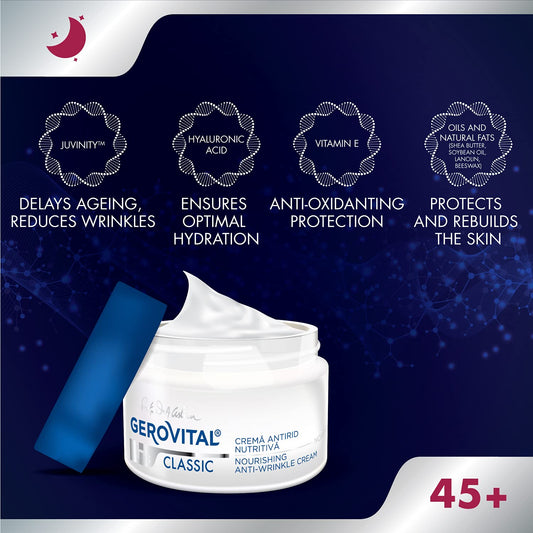 GEROVITAL CLASSIC Restructuring Lifting Cream Night Care with Hyaluronic Acid, Juvinity™, Vitamin E, Anti-wrinkle, Anti-Age Face Cream, Face Moisturizer, 50 ml